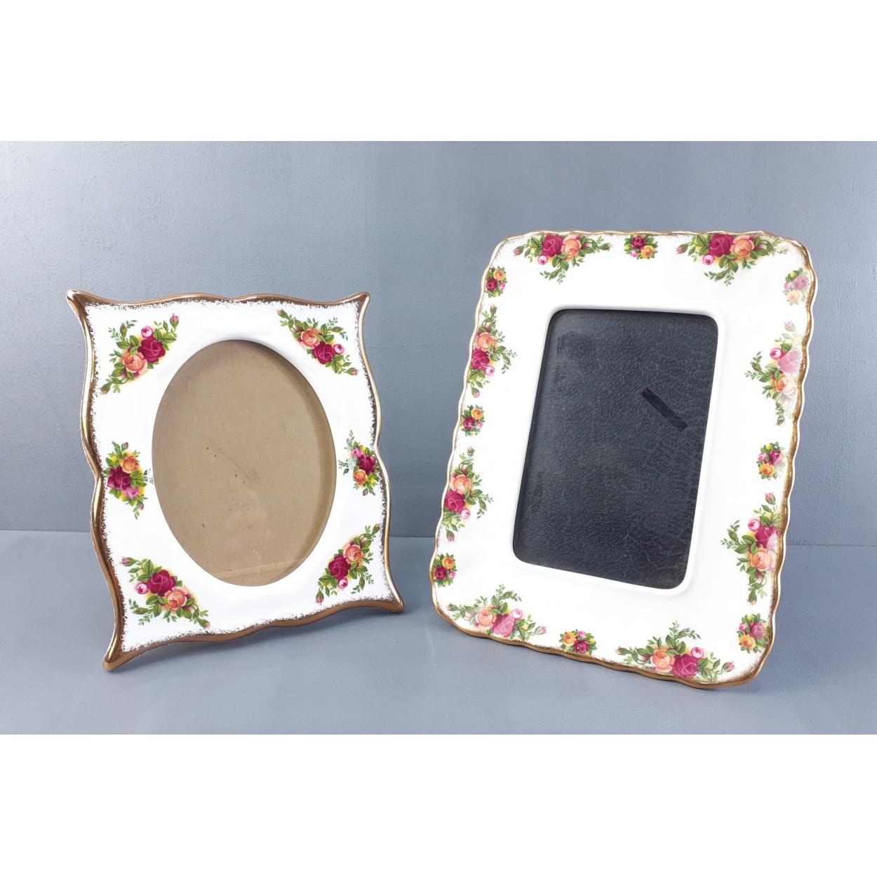 ROYAL ALBERT Old Country Roses. Two pretty picture frames, the largest 22cm x 16cm approx.