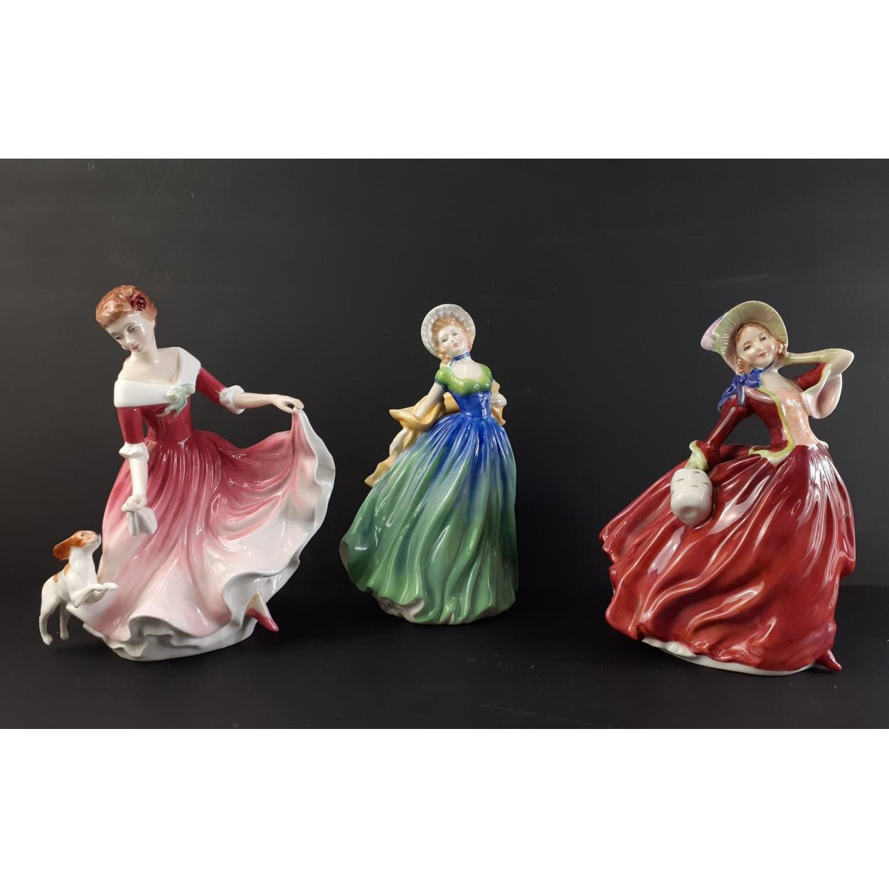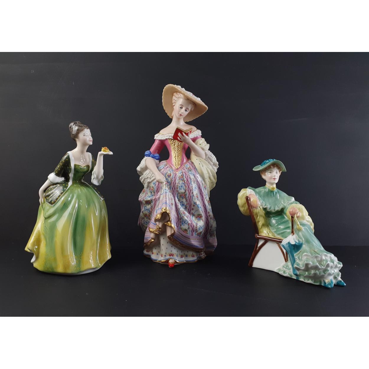 Two ROYAL DOULTON figures to include Ascot (HN2356) in good undamaged condition, Fleur (HN2368) in good condition and a reproduction Victoria & Albert Museum Lady (A9173) in good condition (25cm approx)