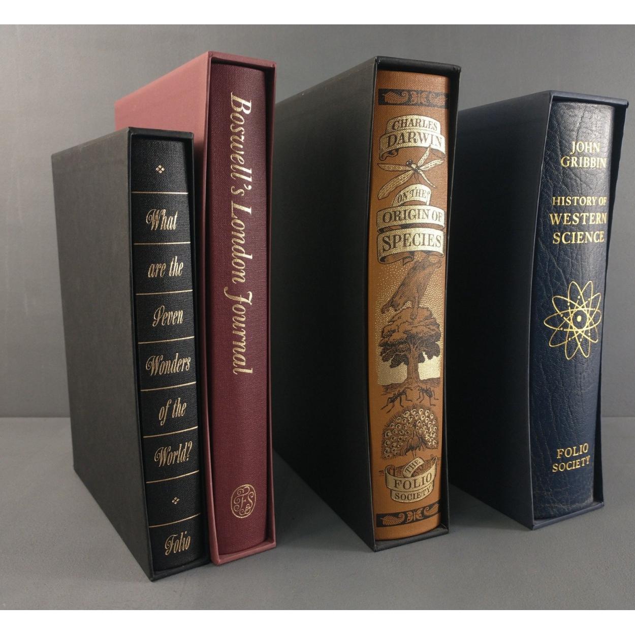 Four wonderful FOLIO SOCIETY volumes in slip cases. CHARLES DARWIN on the Origin of Species, JOHN GRIBBEN History of Western Science, BOSWELL'S London Journal and 'What are the Seven Wonders Of The World'. All four volumes in clean crisp condition.