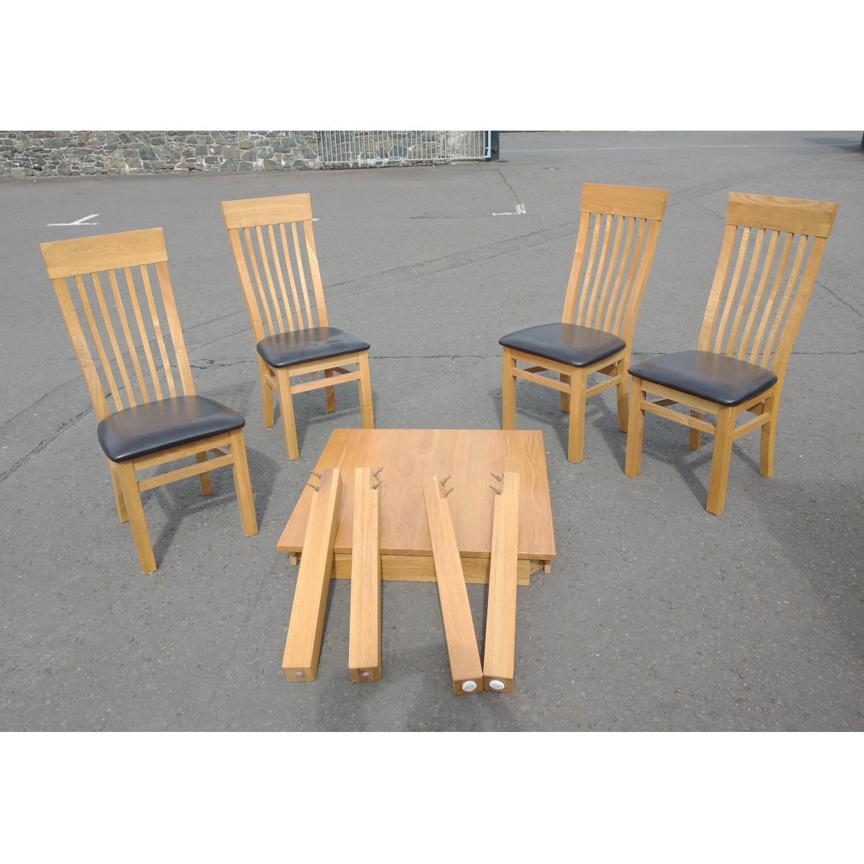 SOLID OAK square dining table 3ft square incl 4 chairs with brown leather seat pads - for info the pic of the table looks rectangular but it is definitely square.