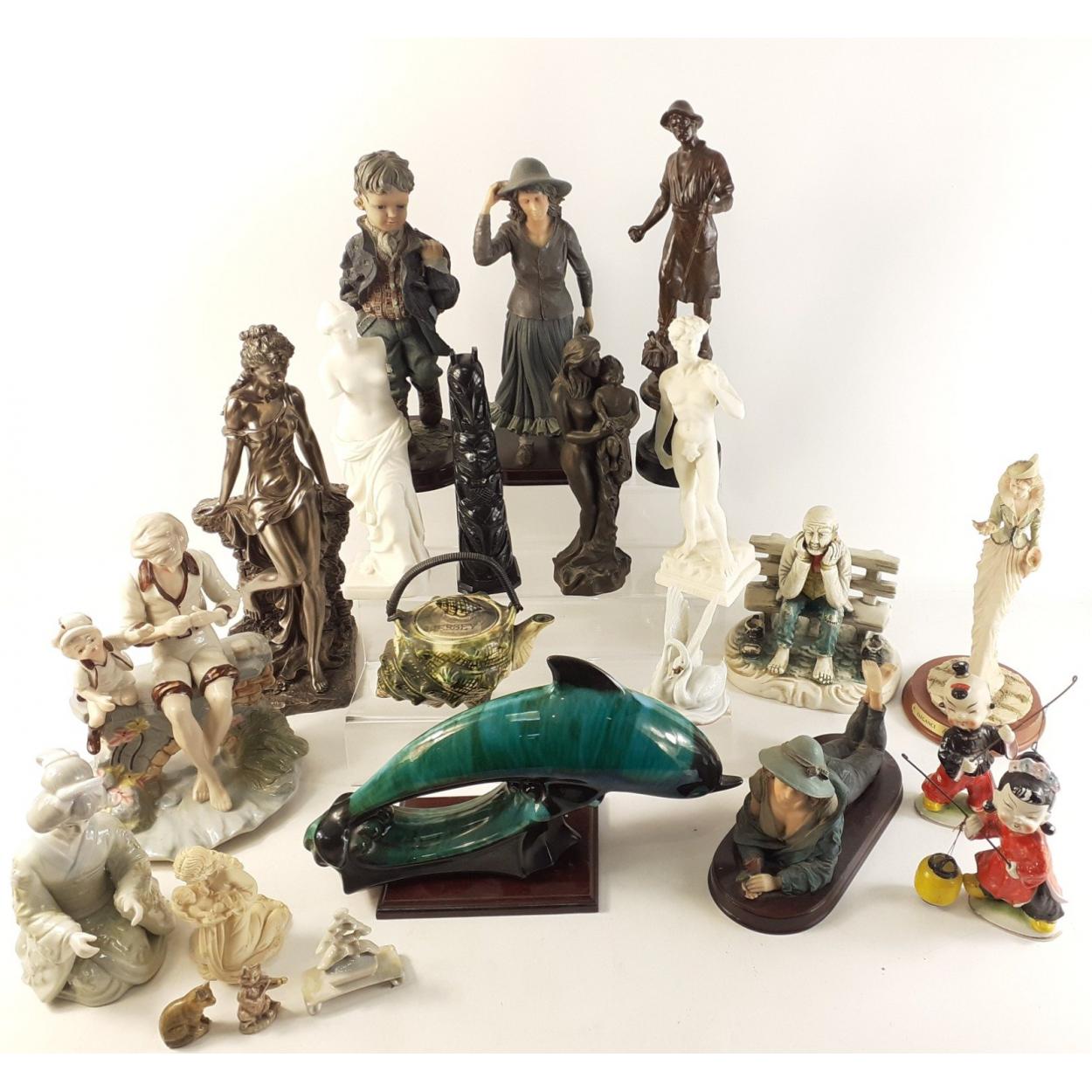 A selection of collectible ornaments. Mixed lot to include Blue Mountain pottery, Oriental figures, bronze effect items and much else.
