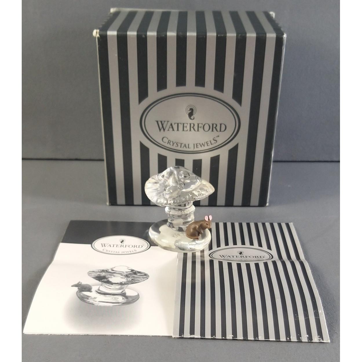 A beautiful WATERFORD Crystal Jewels 'Nature's Umbrella' mouse with toadstool, 4cm approx
