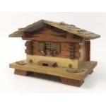 A lovely wee wooden ALPINE wind-up musical trinket box in ALPINE chalet form - 12cm width x 8cm x 8cm height approx