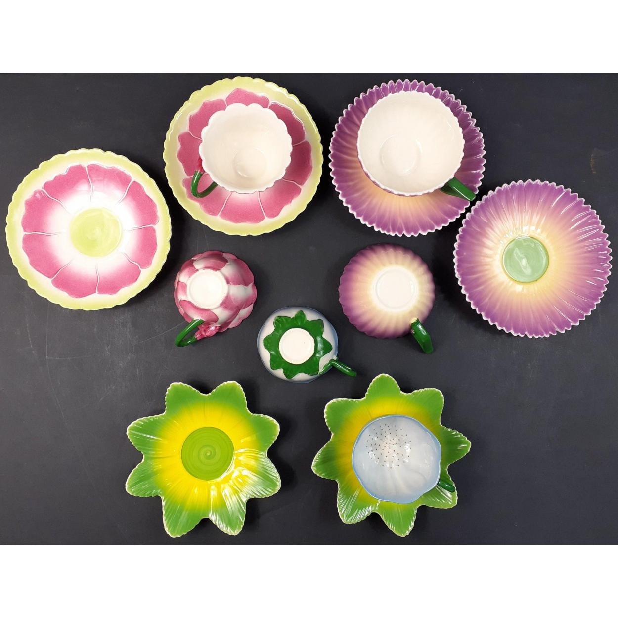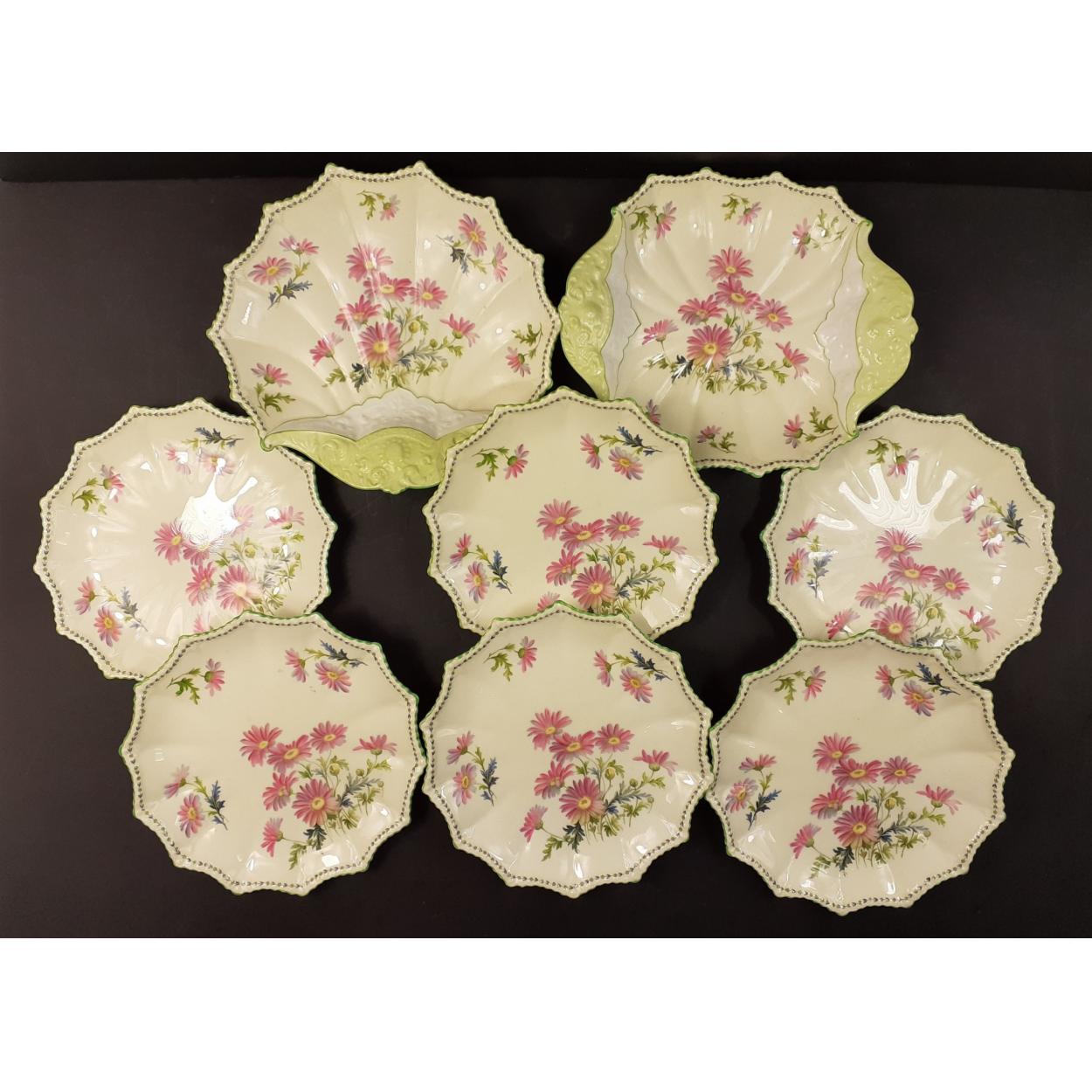 AYNSLEY eight piece dessert set. Lovely painted daisy like floral patterns. All eight pieces in good condition.