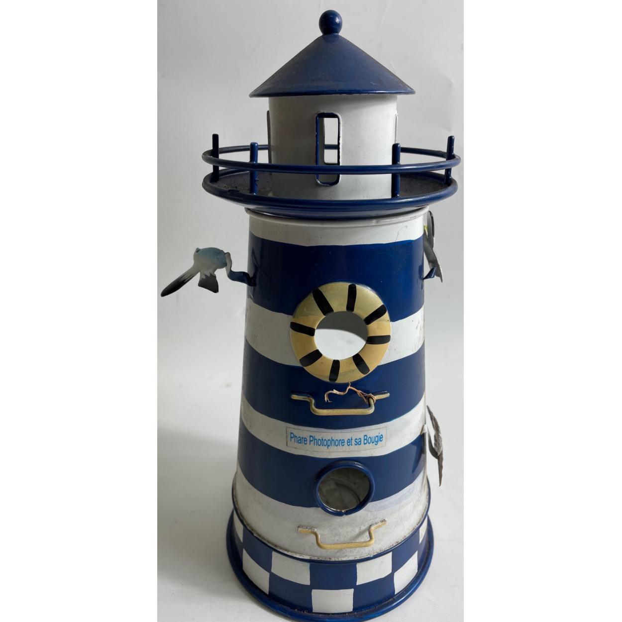 Something a bit different - a modern French tealight holder standing 30cm tall in the form of ablue and white lighthouse.