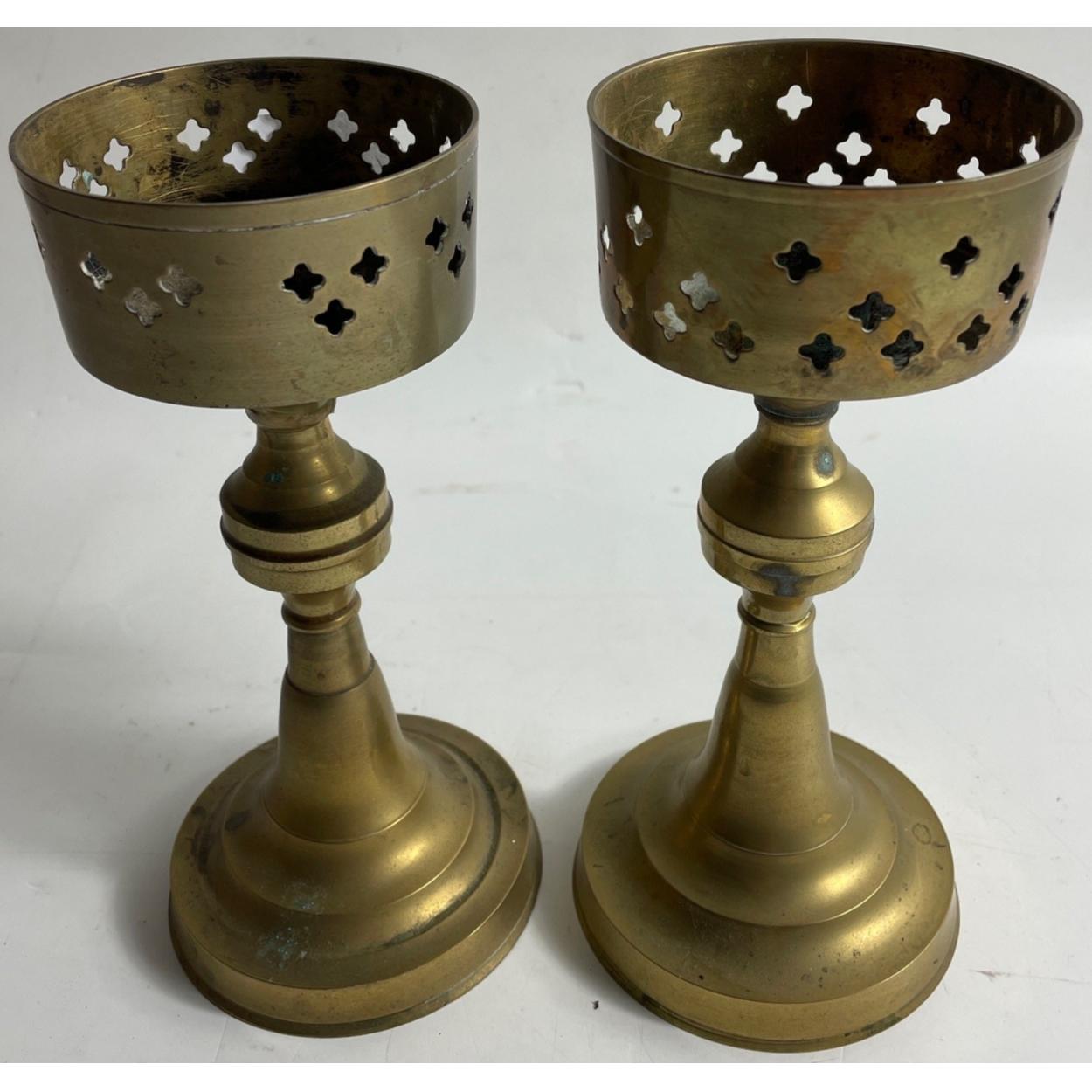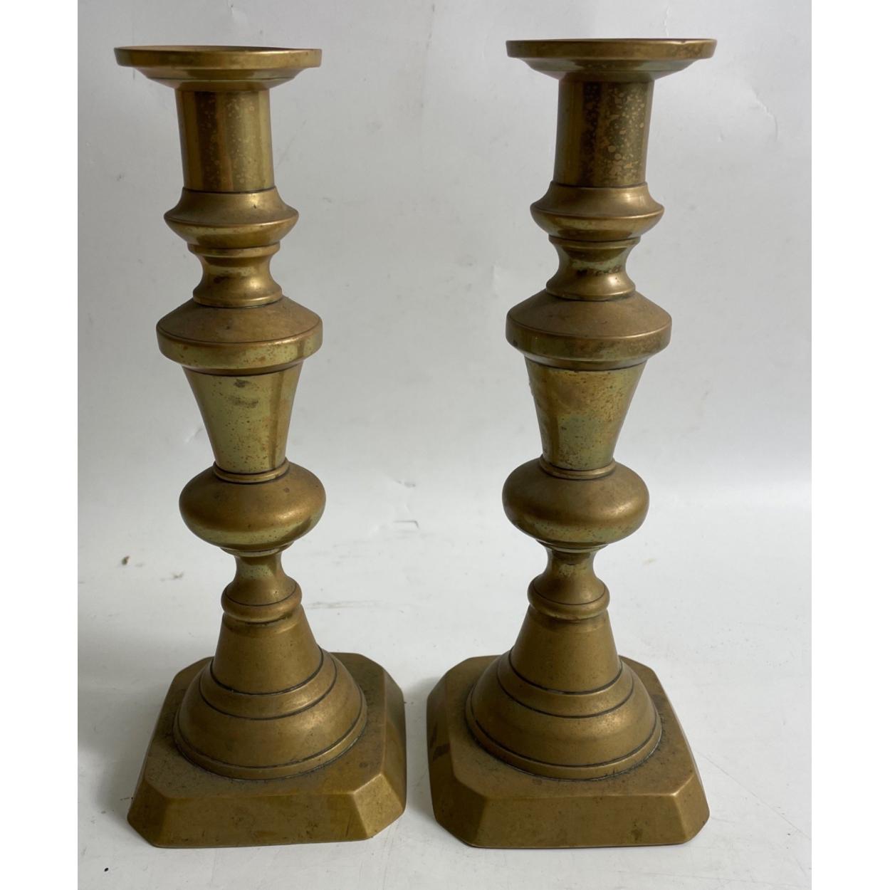 ANTIQUE A pair of heavyweight copper alloy candlesticks standing approx. 21cm high