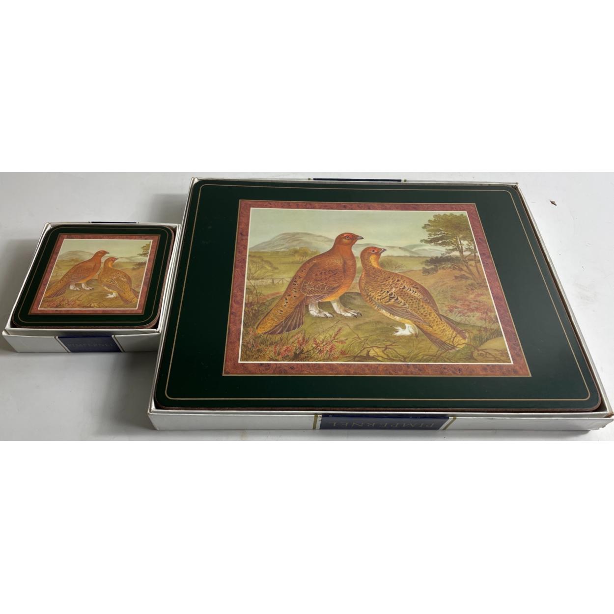 A set of 6 PIMPERNEL game birds place mats and coasters.