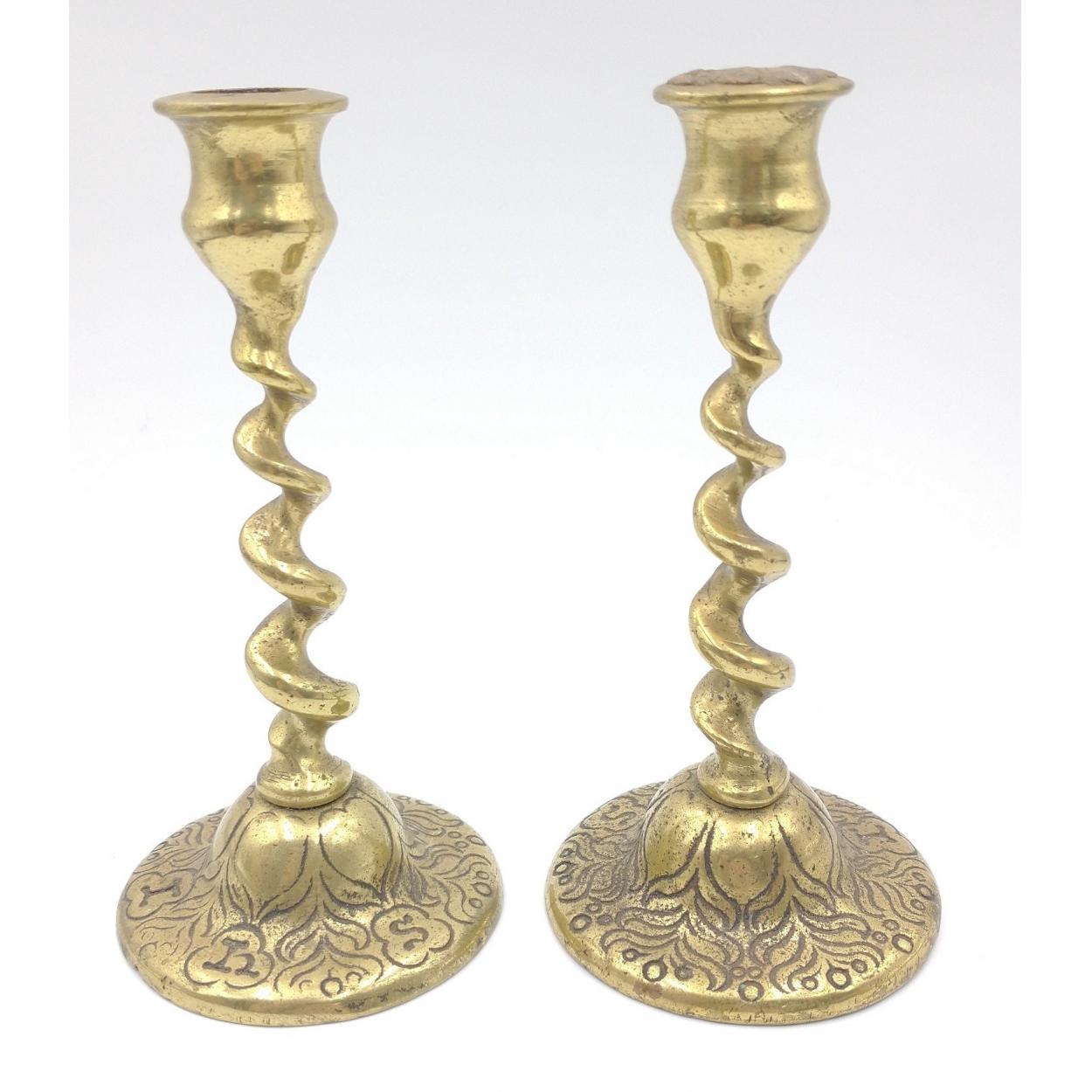 TWO TWISTED STEM BRASS CANDLEHOLDERS