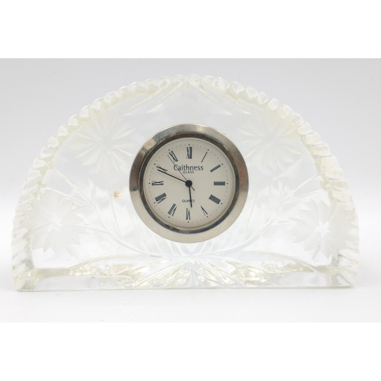 Seven crystal napkin rings plus a crystal basket (approx 16cm wide)