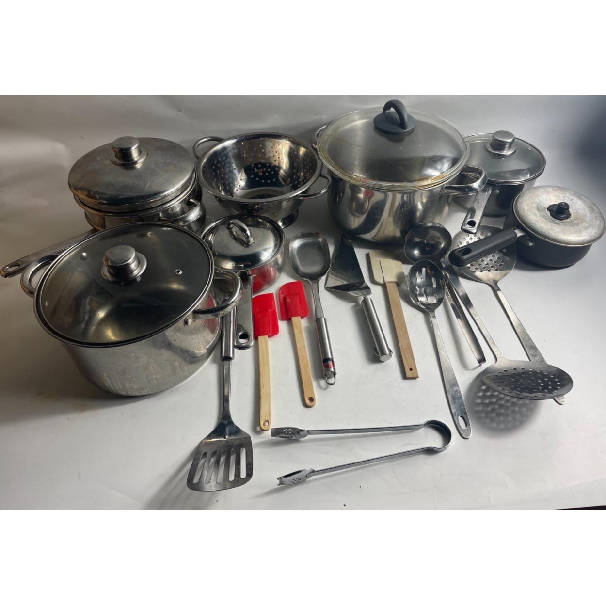 COOK'S SPECIAL - or the about-to-leave- home student special, a great collection of kitchen utentsils to include pans, colander, steamer attachments, ladles, skimmers, slotted spoons etc, etc