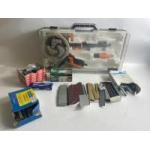 A VINTAGE concertina folding tool box FILLED with tools etc with a couple of hammers