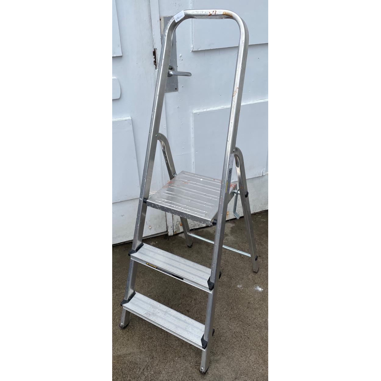 YOUNGMAN BRANDED A small two step set of aluminium ladders with a ‘high- handle' to steady yourself'!