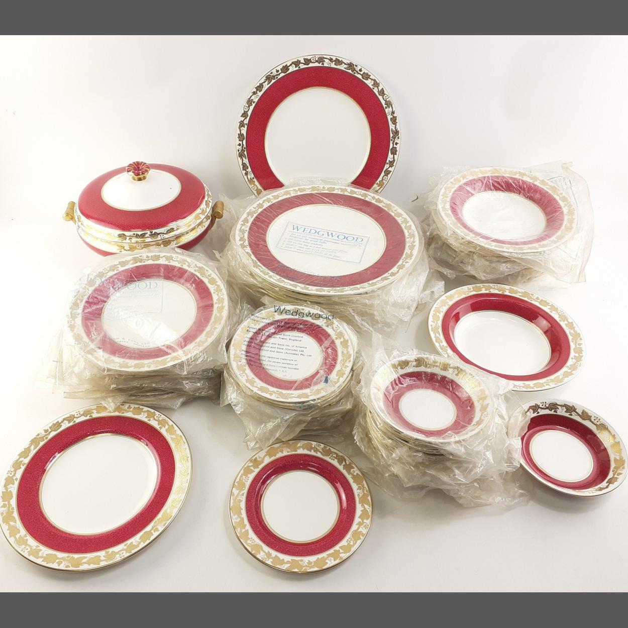 WEDGWOOD Bone China WHITEHALL W3994 pattern part dinner service. Comprising 1 large tureen, twelve dinner plates, twelve small plates, twelve bowls, twelve side plates, twelve saucers. Good clean, useable set.
