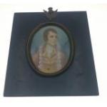 A superb antique miniature of ROBERT BURNS in antique frame with thistle finial, piece signed possibly Dupre. Picture size 9cm approx