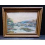 An accomplished water colour of Local Interest by R.J. WOOD. Appears to be the bridge on Yarrow Water although wrongly labelled on rear as Yair Bridge. Nice wooden gilt frame. Measures 60cm x 47cm approx.