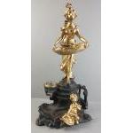 A VINTAGE cast ornate ink stand with an ART NOUVEAU style classical lady and a cherub decoration - dimensions 38cm height x 20cm at the base width approx - the ink well isn't original but otherwise in lovely condition.