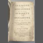 Sermons and Discourses on several Subjects and Occasions by FRANCIS ATTERBURY. Vol 1 of the fourth edition published by T Woodward; C Davis; London, 1735. This book has been rebound. The pages are intact but show signs of wear commensurate with their age.