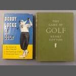 Two antiquarian GOLF books of interest to include superb scarce BOBBY LOCKE ON GOLF hardcover 1953 first edition with dustcover (with chips). Also 1948 first ed. THIS GAME OF GOLF by HENRY COTTON, without dust jacket. Both volumes with hand written messages / names in front.