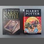 An early first edition copy of the adult cover HARRY POTTER AND THE HALF-BLOOD PRINCE by JK Rowling with the rare misprint on Page 99, Line 9, says "eleven" instead of "ten" O.W.L.S. Hard back copy with dust jacket. Few creases to top of jacket. Unread condition. ISBN 074758110x. Plus a first edition hardback copy of HARRY POTTER AND THE DEATHLY HALLOWS with dust jacket in good condition.