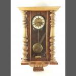 A wall-mounted wooden pendulum clock with no maker's mark. Length 66 x41cm approx