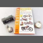 A small mixed lot to include a Fogg's patent pocket watch - non running. A metal vesta case, Rand folding Opera glasses and a motorcycle book.