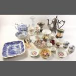 A lot of attractive decorative items to include ornate plated teapot, Copeland Spode teapot, reproduction Chinese bowl, Royal Winton bowl and others.