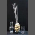 A KROSNO labelled glass vase (36cm tall) currently full of Christmas baubles and LED lights, an LSA vase (40cm tall approx) and a smaller unlabelled vase