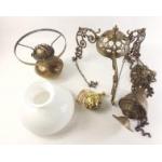 Large ornate French brass pendant lamp with glass shade. Appears to be in good condition. 135cm in length approx.