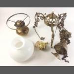 Large ornate French brass pendant lamp with glass shade. Appears to be in good condition. 135cm in length approx.