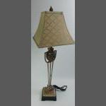 A large modern metal table lamp with shade. Stands approx 90cm high inc. shade