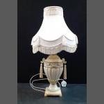 Classy table lamp in cream and gilt with a tassled lampshade - stands approximately 73cm tall