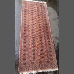 A vintage rose pink based runner with 40 medallions 200 x 90cm approx