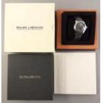 BAUME & MERCIER GENEVE gent's AUTOMATIC wristwatch in its original presentation box with instructions and warranty card. Warranty card dated 2004 and gives individual watch number as 8222. Model on rear case is noted as MVO45221