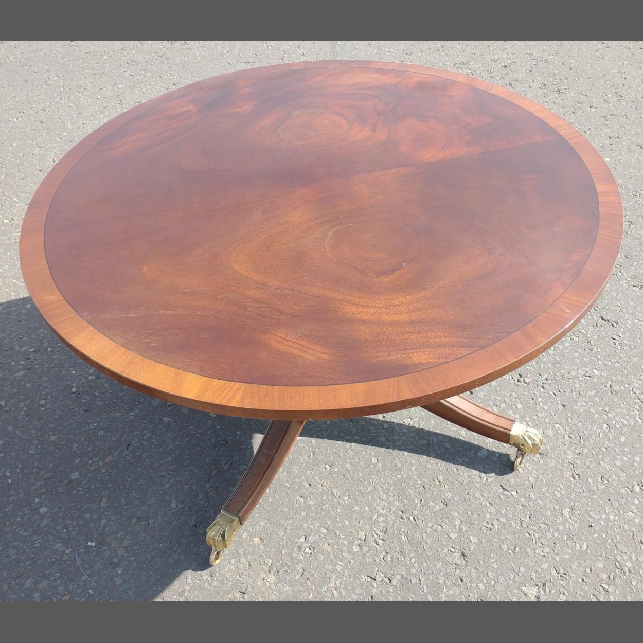 A nice quality mahogany GEORGIAN inspired low table with two hinged extension leaves and two drawers with brass handles and fittings - 3ft length(4ft when extended) x 18" depth approx