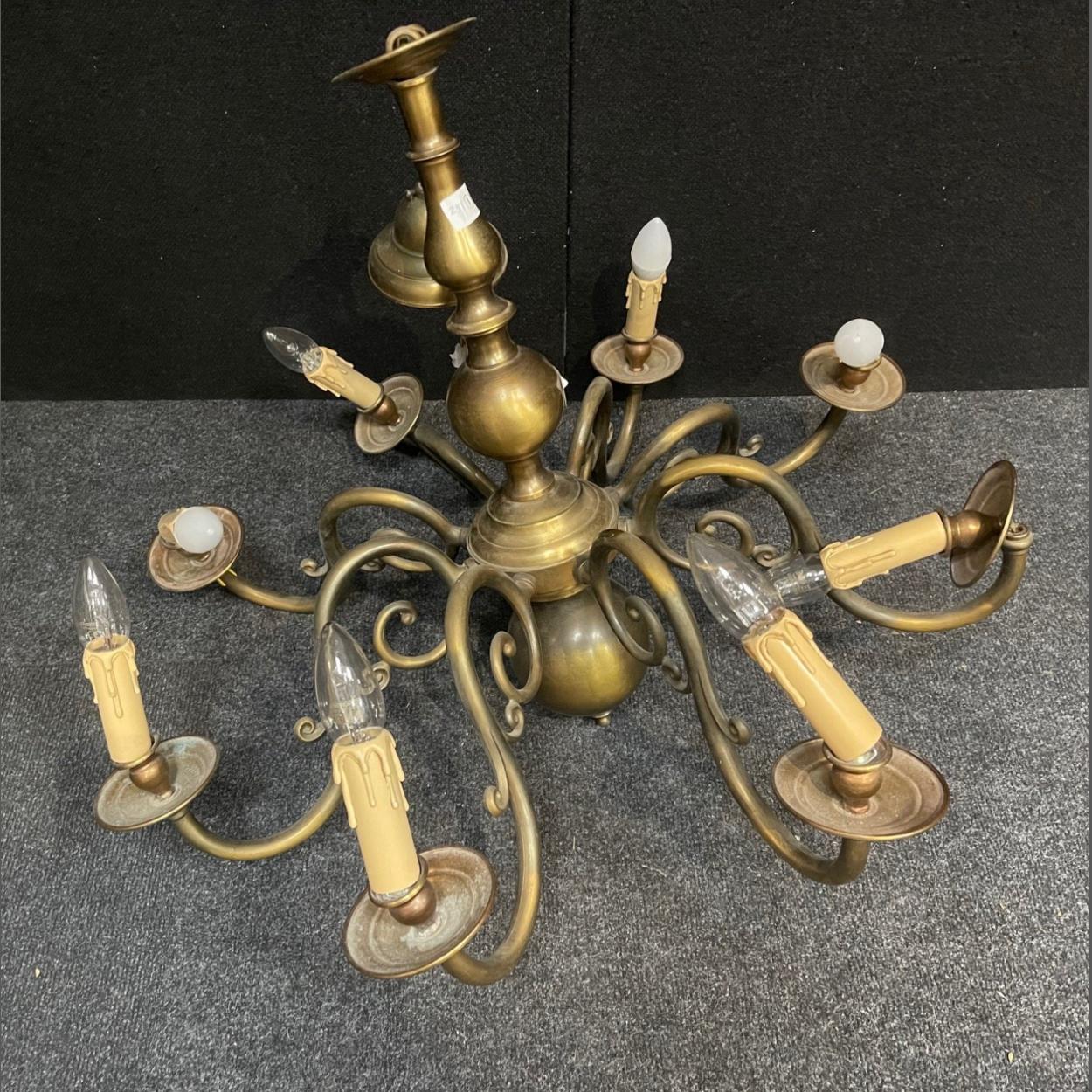 A VERY LARGE electric ceiling CHANDELIER in brass 80cm diameter x 60cm height approx