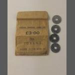 A collection of 4 NATIONAL 5p TRANSPORT TOKENS within their original envelope - Transport Act 1968 section 138