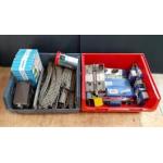 HORNBY DUBLO 3 track quantity of track, with also a HAMMANT & MORGAN Ltd transformer 12 volt, with also lots of accessories to include rolling stock Royal Mail, track crossing and some smaller boxed items such as electrically operated points EODPR, a boxed curved half rail and much more! - all contained in two plastic storage boxes red and blue