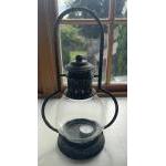 UNUSUAL! A BULBOUS glass storm-style lantern with carry-handle in a distress-look finish - dimensions 35cm height x 22cm width