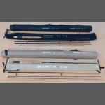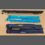 A selection of quality fly fishing rods to include TF GEAR AFTM 9ft 6" by MATT HAYS in original soft case and hard carry tube, Redington PATH 9ft 4 piece in original case and FLEXTEC SUMO distance XS 10ft three piece rod in original soft and hard shell carry case