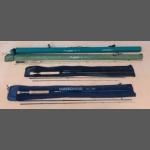 Three Airflo fly fishing rods in travel cases to include Airflo three piece 9 ft 5/6 fishing rod, Airflo Bluetooth NANO 9ft #8/9, AIRFLO Delta Plus AFTM #6-7 three piece in soft case and screw top hard travel case. In well cared for condition