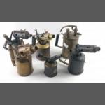 A super collection of five antique hand-held blow torches and one sprayer. Includes a nice couple of SIEVERTS and others. Great little display lot