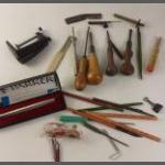INTERESTING! - A box of vintage hand tools possibly for working with leather upholstery etc