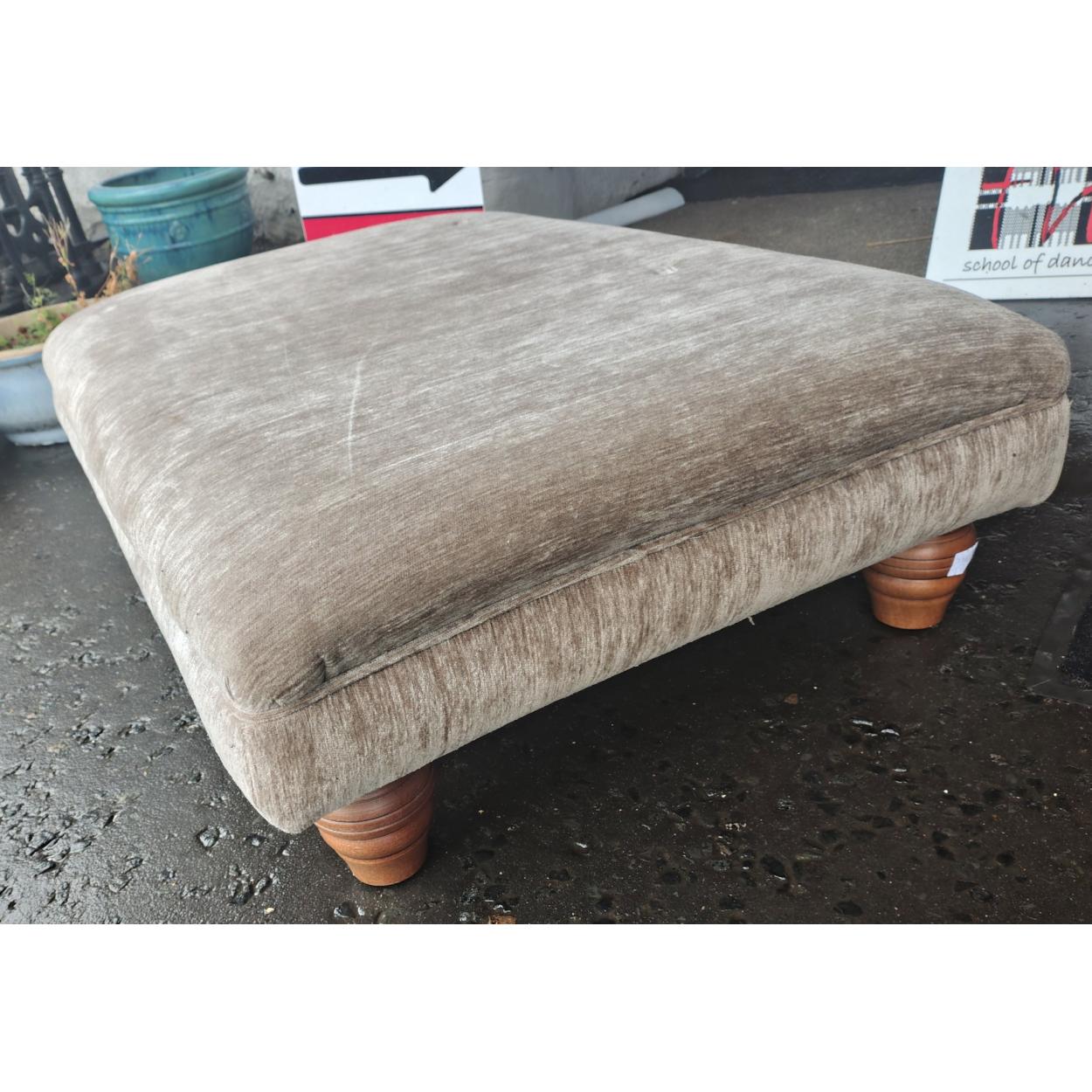 A large footstool with good beige fabric covering. Measures 94cm x 63cm approx.