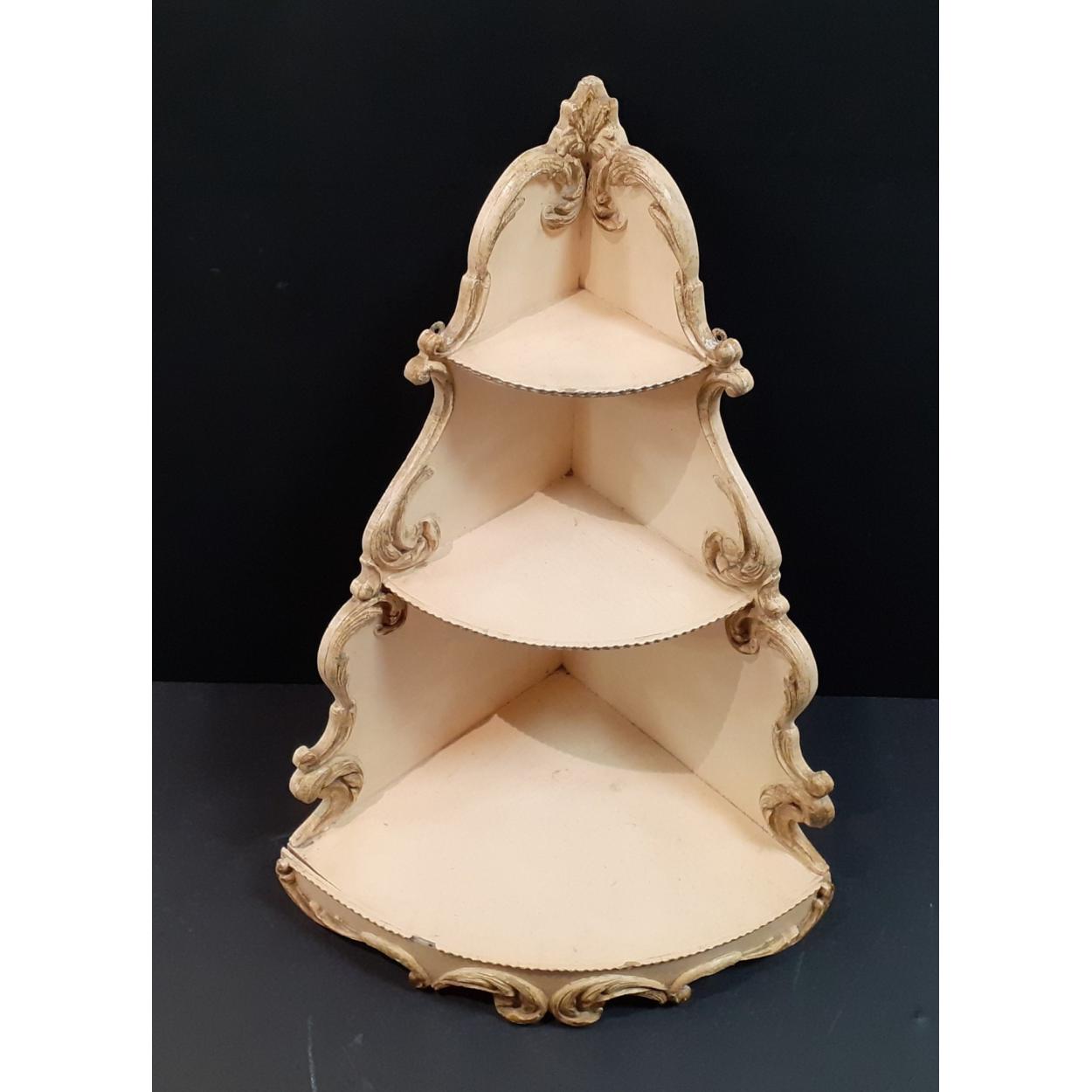 A Rococo style three shelf corner unit. Decorative and functional. Stands 55cm approx.