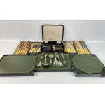 A large wooden canteen of cutlery (40Wx30Dx11cmH) 2 cantilever layers and a quantity of EPNS cutlery including fish knives and forks, pickle forks etc