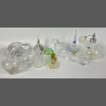 A collection of glassware to include a CAITHNESS glass perfume dispenser (12cm tall), a DARTINGTON crystal perfume bottle 9cm tall,(damage to stopper)an Eygptian perfume bottle ( 13cm tall etc