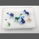 Six small glass animals to include a camel, an elephant and a kangaroo etc