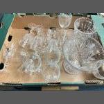 A box of mixed crystal to include 3 vases 16cm, 18cm and 20cm, 6 crystal wine glasses with thistle design and 8 crystal wine glasses