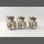 Three antique William Brownfield, COBRIDGE, 1864 Albion Armorial jugs with pewter lids to commemorate the wedding of Queen Victoria to Prince Albert 16, 15 and 14cm high, no chips, cracks or visible damage