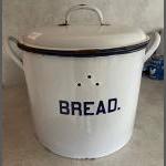SUPER COOL!! A VINTAGE ENAMELLED BREAD BIN with lid - dimensions 34cm wide x 30cm tall approx